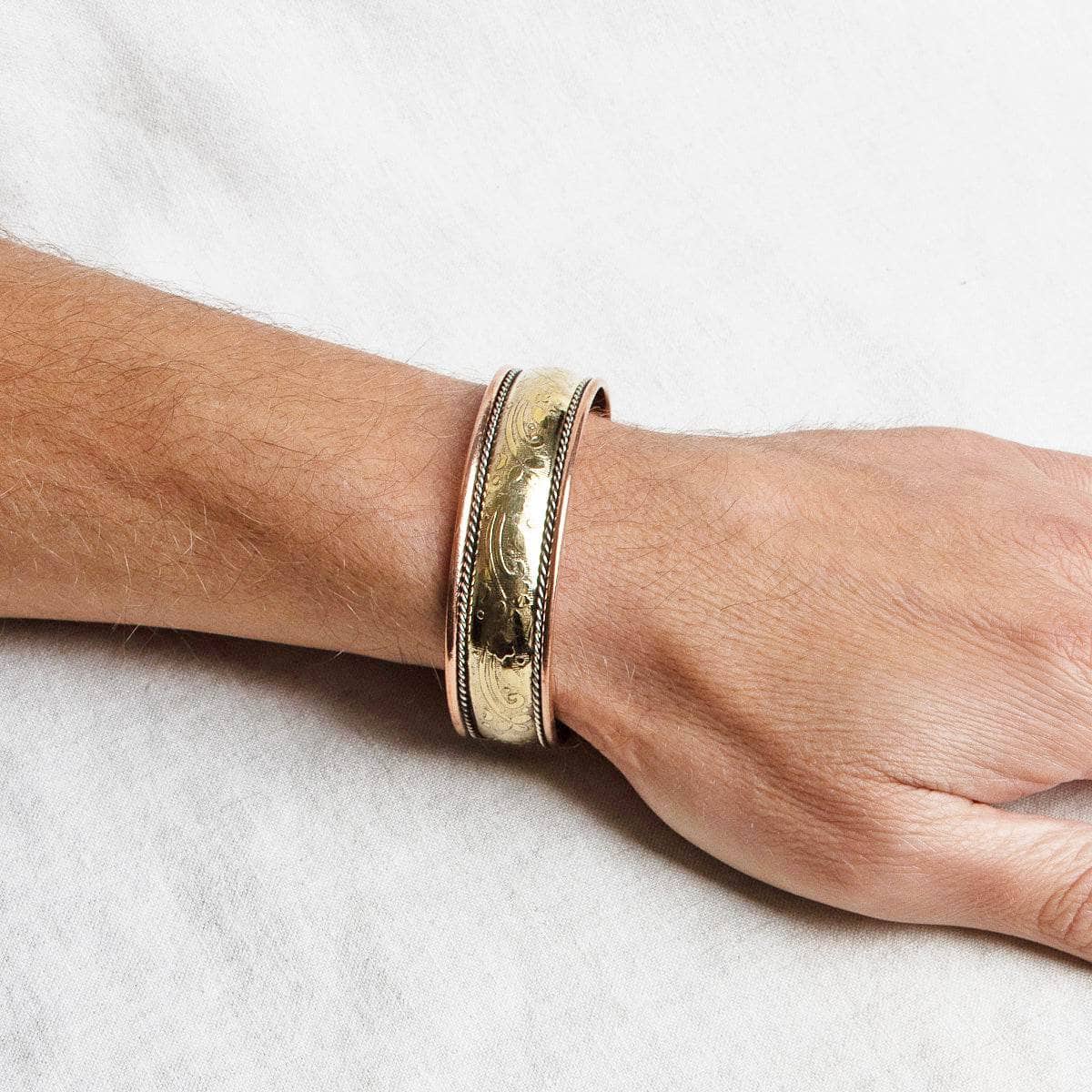 Beauty meets grace and high vibrational healing in this Tibetan Handcrafted Brass & Copper Healing Bracelet. Marrying the conductor energy of copper with the playfulness of nickel and the bold balancing act of brass, this bangle comes cuffed with the three healing metals forged with love by Tibetan Monks from the Drepung Loseling Monastery in India.