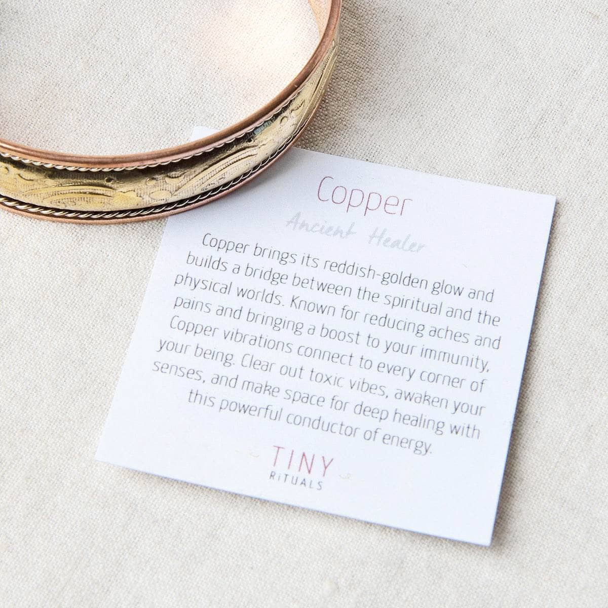 Copper is one of the oldest healing metals and brings with its high vibrations and big conductive energy. It has a bright and zesty style that goes deeper than any other healing metal. Wearing copper can clear the path of anxiety and lethargy, granting you that golden boost of inspiration you need. It also helps ease aches and pains as it wants the body to shine as bright as the soul.
