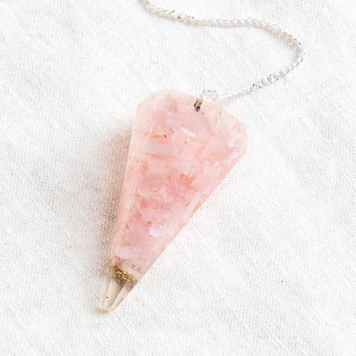 Rose Quartz for nurturing love and self-assurance. This pendulum encourages compassionate guidance and keeps your energy soft and warm and open to giving and receiving all kinds of love.