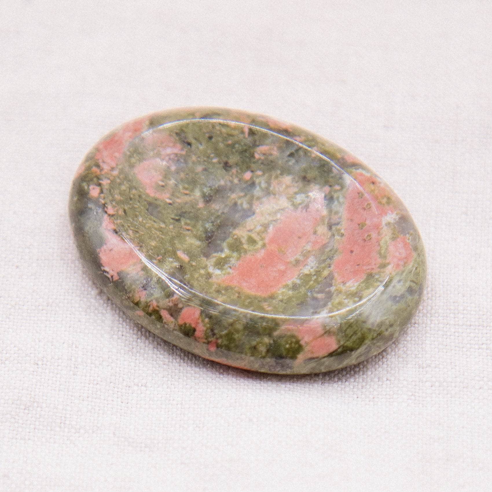 From the Unaka Mountains, the Unakite Worry Stone comes dressed in soft shades of green and pink. Resplendent with all the energy of mother nature, this gentle and joyful gem brings loving power, and spiritual bliss, and sharpens vision so you can see clearly and stay connected as you move through this life.