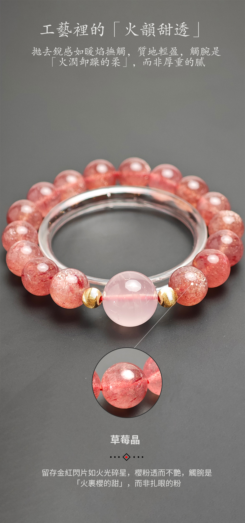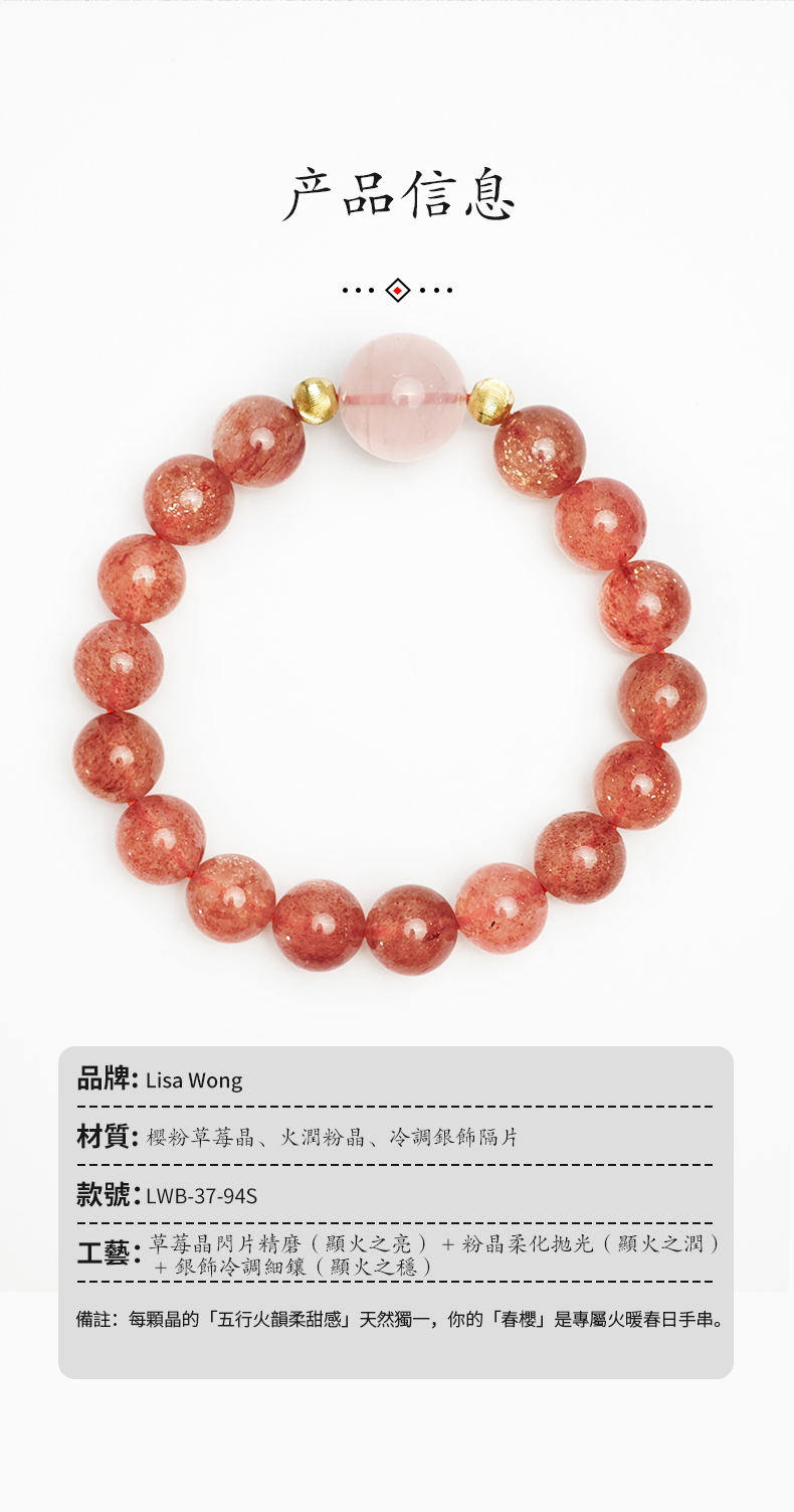 • 養護小貼士:每月用清水沖洗水晶表面灰塵,擦乾後放置在陰涼處(避免暴曬);水晶忌接觸香水、消毒液等化學物質,佩戴前建議先噴完香水再戴。