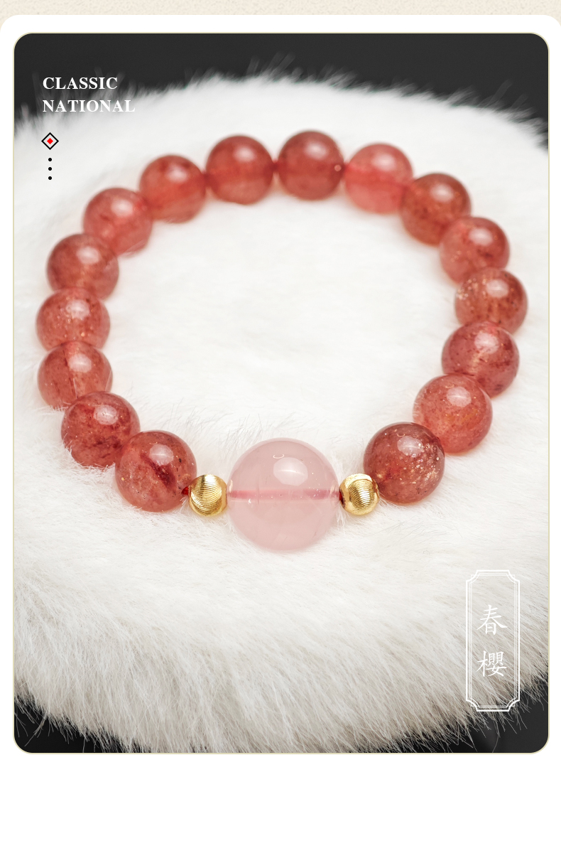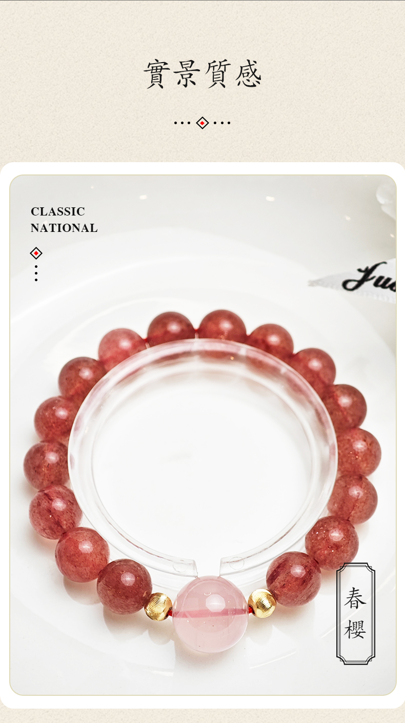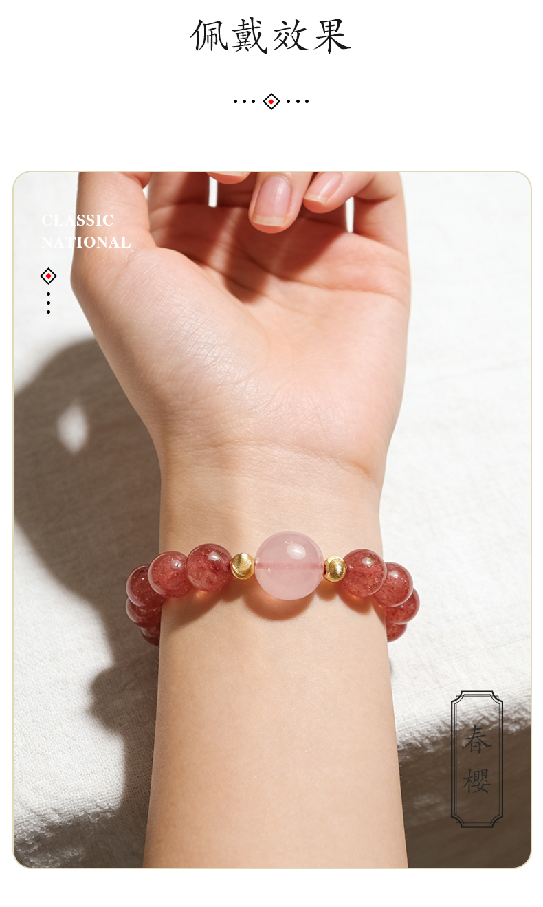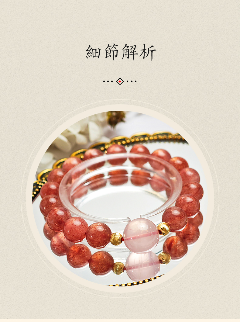 • 手鍊佩戴:日常單圈佩戴貼合手腕即可,疊戴建議搭配同色系細款銀鏈/其他水晶(避免不同硬度飾品磕碰);洗澡/睡覺/運動時建議取下,防止水晶接觸化學洗劑或撞擊破損。